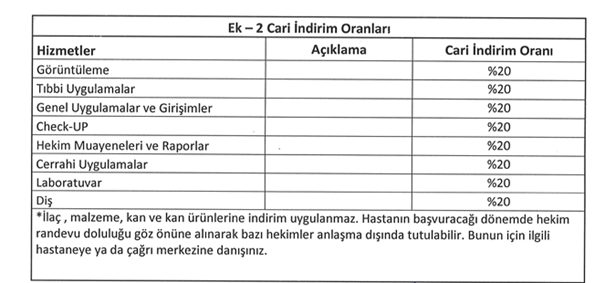 Medicana Hastaneleri ile Türkiye geneli 16 şubesinde geçerli olmak üzere üyelerimize ve 1. Derece yakınlarına ilişkin sağlık tedavilerinde % 20 indirim anlaşması yapıldığını belirtir, sağlıklı günler dileriz.